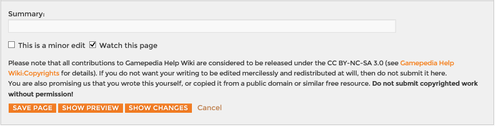 Second, you should always use the Show preview button. After you have entered a change in the edit box for the Gamepedia Help Wiki:Sandbox, click the Show preview button instead of Save page. This lets you see what the page will look like after your edit, before you actually save. We all make mistakes; this feature helps you catch them before other people see them. Using Show preview before saving also lets you try format changes and other edits without cluttering up the page history.