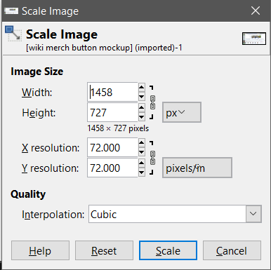 - Once the Scale Image toolbox opens, simply select either the height or width and change it to the value you desire. By default, the two values are linked and the second will auto-adjust to match your chosen dimension.
